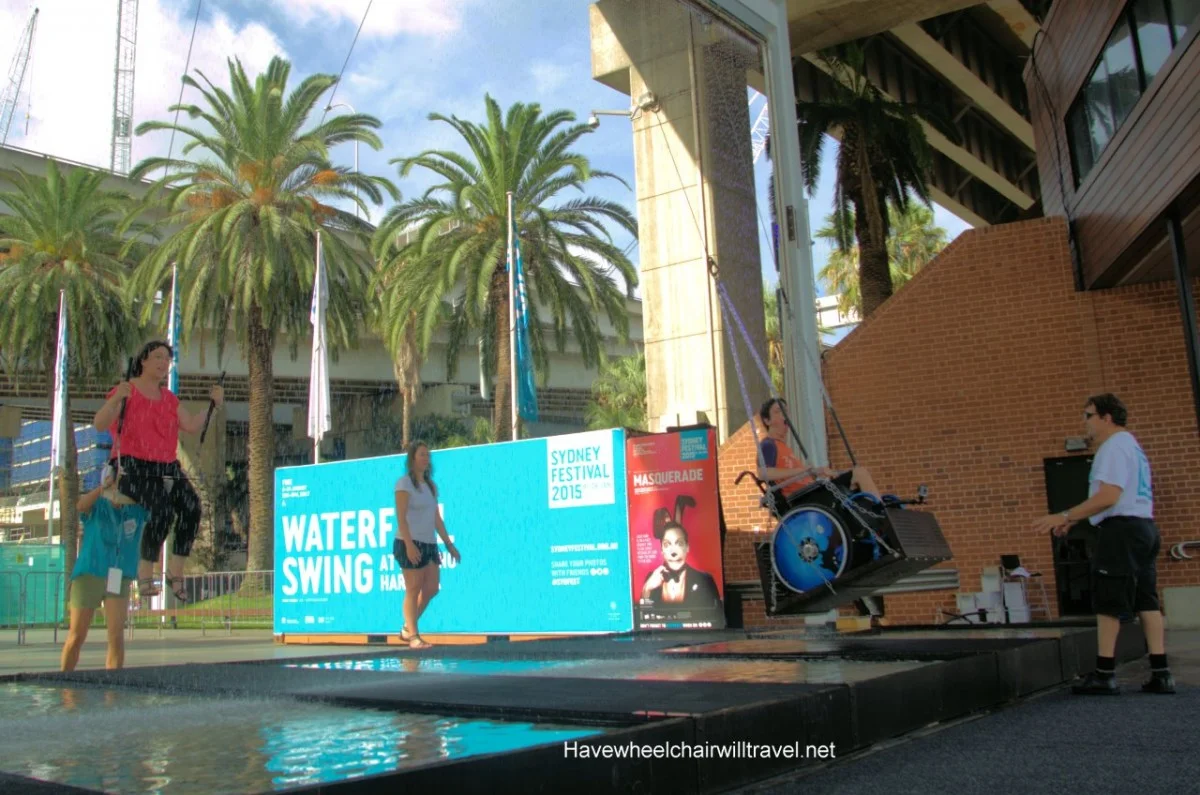 The Waterfall Swing at Sydney Festival is not only our first four person swing, but is also wheelchair accessible! Read more at Have Wheelchair Will Travel.